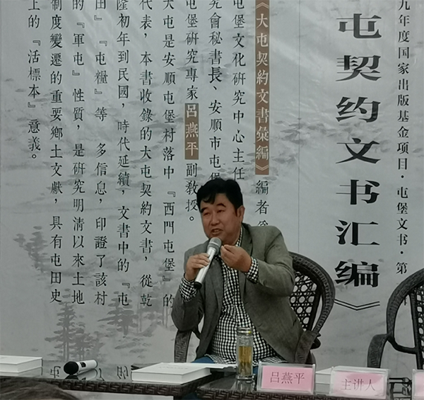 《大屯契约文书汇编》一书以彩色图文对照的形式汇编了贵州安顺的典型屯堡村落--大屯村自清乾隆三年以来的五百三十四份契约文书及一百二十一份串票,彰显近300年屯堡村落社会发展和历史变迁的整体面貌,对明代军屯制度研究、安顺屯堡旅游开发等方面提供了详实史料,具有重要的学术和文献双重价值。吕燕平教授对《大屯契约文书汇编》的介绍和内容分享,拓展了与会读者们对屯堡文化及历史发展更深层次的认识。
