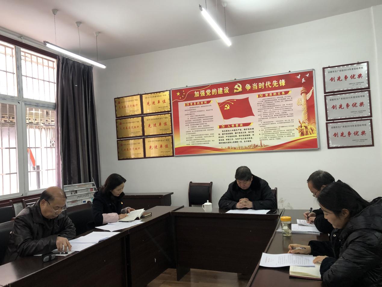 2020年12月24日下午,安顺市图书馆党支部在党员活动室召开了“2020年度第十二次党员大会”,按照上级党组织统一安排部署,安顺市图书馆党支部书记、馆长隆潮霞给与会党员宣讲党的十九届五中全会精神。在宣讲过程中,隆潮霞同志通俗易懂地介绍党的十九届五中全会精神,重点宣讲了怎样才能推进社会主义文化强国建设的问题,并结合安顺市图书馆的工作实际,号召图书馆全体党员干部职工积极响应习近平总书记和党中央的号召,爱岗敬业、奋发图强、无私奉献,用实际行动为推进社会主义文化强国建设贡献自己的一份力量。与会党员听了隆潮霞同志的宣讲后,纷纷表示:党的十九届五中全会总结了“十三五时期”我们党取得的优秀成绩,制定了“十四五时期”规划和2035年远景目标,为我们的工作指明了方向,我们坚决拥护并将认真学习、贯彻、落实。
