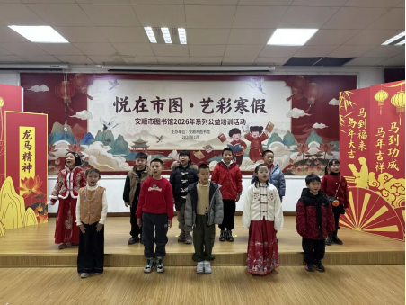 本次活动安顺市图书馆还特别组织了“艺彩寒假·童心展演”活动,近50位小朋友登台展示才艺,表演内容涵盖成语故事、诗歌朗诵、语言表演等,充分展现了孩子们在短期学习中的成长与风采。活动现场掌声不断,家长纷纷点赞,认为此类活动既丰富了孩子的假期生活,也增强了他们的表达与展示能力。